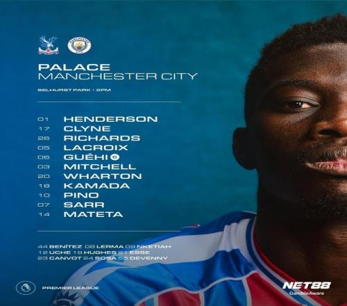 水晶宫首发:1-迪恩-亨德森、17-克莱因、26-克里斯-理查兹、5-拉克鲁瓦、6-格伊、3-米切尔、20-亚当-沃顿、18-镰田大地、10-耶雷米-皮诺、7-伊斯梅拉-萨尔、14-马特塔